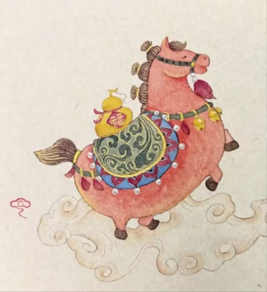 本周主题:国画创作——工笔《马上有福》
