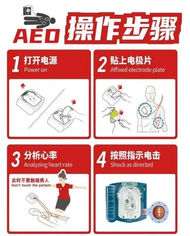 2.AED使用:自动体外除颤器的规范操作流程,可快速恢复心脏正常节律,是心脏骤停急救的关键设备。
