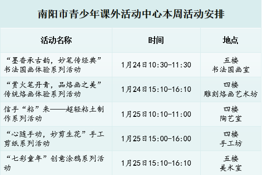 南阳市青少年课外活动中心本周活动安排来啦!欢迎青少年们踊跃参与各项活动,所有活动全程免费。小朋友们,让我们看看有哪些有趣的活动吧!